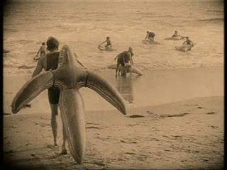 The Leaping Fish of the title refers to a sort of surfboard / blow-up toy. |